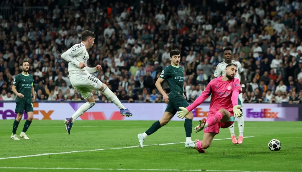 FEDERICO Valverde’s superb first-half hat-trick helped Real Madrid demolish Manchester City 3-0 in a surprise Champions League last 16 first leg rout on Wednesday.